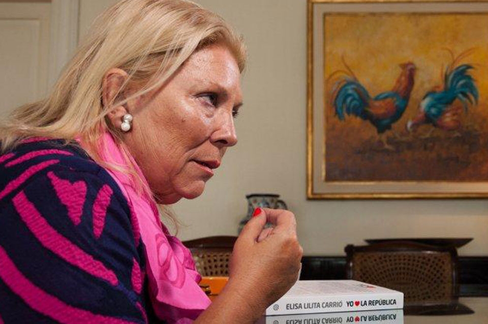 La diputada de Cambiemos Elisa Carrió sostuvo este domingo que existe un "golpe cambiario para destituir a Mauricio Macri", afirmó que en la Unión Industrial Argentina (UIA) "hay hijos de puta" y le pidió perdón al consultor del oficialismo Jaime Durán Barba por unas recientes críticas que había hecho contra el ecuatoriano. "En la historia de la Argentina hay fundadores y oportunistas, siempre, en todas las épocas. Hoy hay gente que juega con la patria. Quieren hacer un golpe cambiario para destituir a un presidente", remarcó Carrió al hablar en la presentación del libro "El Origen", de la dirigente de la Coalición Cívica Mariana Zuvic.