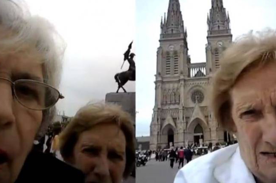 Ambas mujeres deciden consultar a un grupo de chicos en la explanada de la iglesia para que las asesoren con la foto. Luego de que lo publicaran en las redes sociales, el video ya tiene más de un millón de reproducciones y cientos de comentarios de aliento y risas.