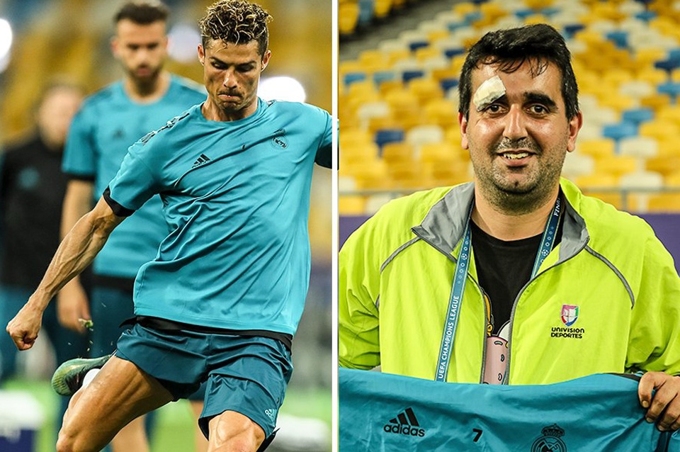 La preocupación del jugador merengue fue inmediata y desde el percance no dejó de ver el estado del camarógrafo. Al ver que lo había lastimado, CR7 le envió con gente del staff del Real Madrid la remera con la cual estaba entrenando.