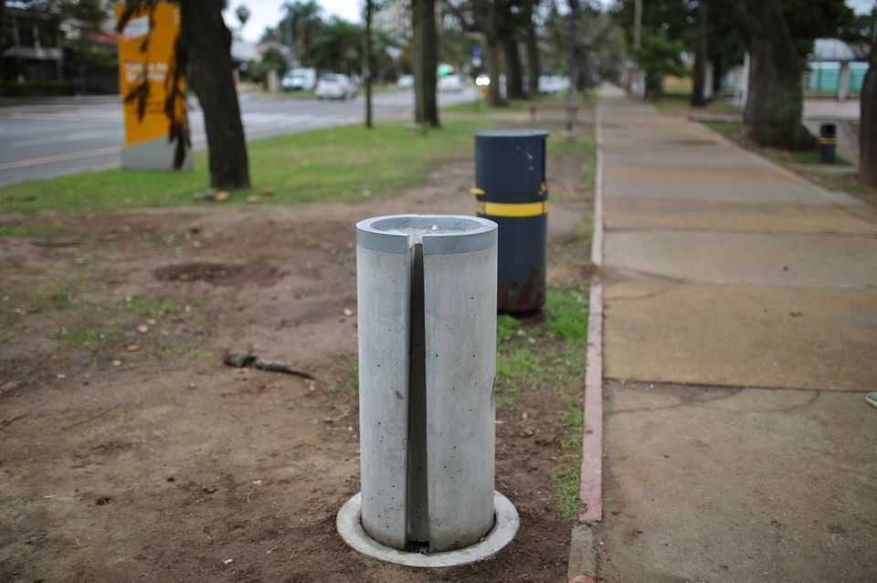 Vale recordar que en el Concejo Municipal, se presentó el proyecto que fue considerado y puesto en marcha por el Gobierno de la Ciudad para la colocación de bebederos en espacios públicos que sean antivandálicos. Por tal motivo, se realizaron en hormigón, logrando una forma monolítica y poseen un botón lateral que acciona la salida de agua. El agua circula a través de una pendiente en forma de catarata, que recorre el lateral del bebedero hasta una rejilla de desagüe. A la forma cilíndrica las atraviesa un espacio a modo de escalón, para que los más pequeños puedan utilizarlo también.