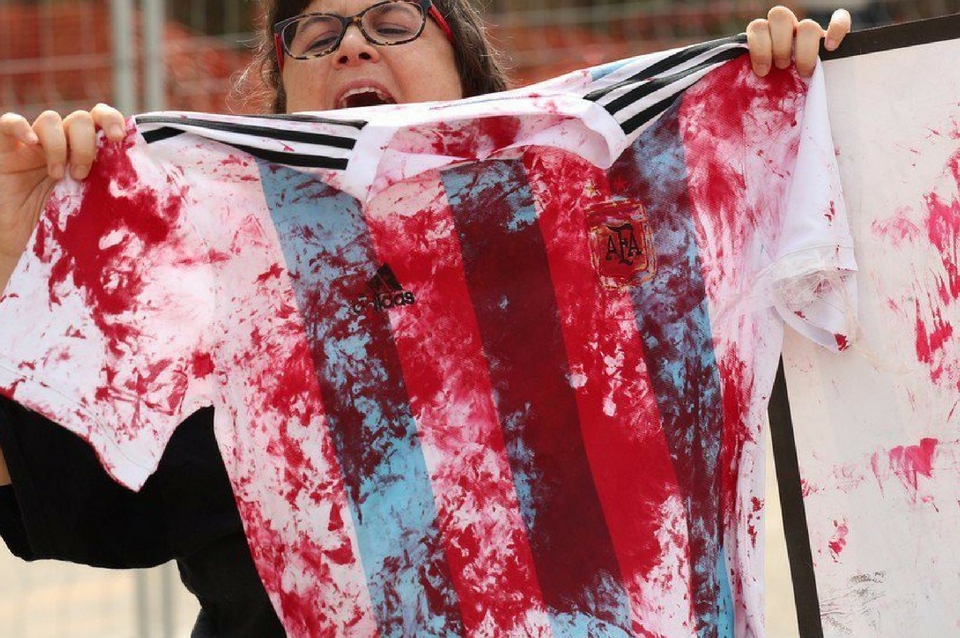 Hubo un ambiente muy tenso en torno al amistoso que debe jugar la Selección Argentina el próximo 9 de junio ante Israel, en Jerusalém, en el último partido antes del comienzo del Mundial de Rusia. Con una camiseta manchada de sangre y banderas de Palestina, se realizaron protestas respecto a este encuentro en la puerta del hotel donde está alojada la delegación nacional.