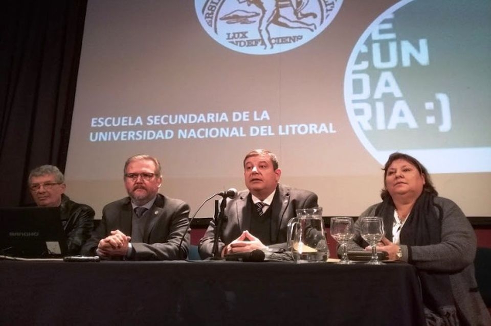 El acto comenzó con las palabras del vicerrector y secretario de Planeamiento Institucional y Académico, Claudio Lizárraga, quien aseveró: “A esta experiencia, que consideramos innovadora, la vienen trabajando con muchísimo entusiasmo y expectativas los docentes y directivos de la Escuela Secundaria de la UNL. Otorgamos relevancia a este proyecto porque se enmarca en los trabajos que realizamos en torno a la articulación y el ingreso a la Universidad. Lo importante de este taller es lograr ese primer trabajo entre profesores de 5° año de la Escuela Secundaria, profesores de la Universidad y secretarios académicos”.