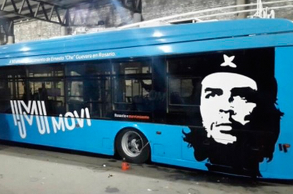 En Rosario, a 90 años del nacimiento del Che Guevara, su imagen fue inmortalizada en la cara lateral de una de las unidades de un trolebús de la empresa estatal Movi. Esto desató una polémica, especialmente política.