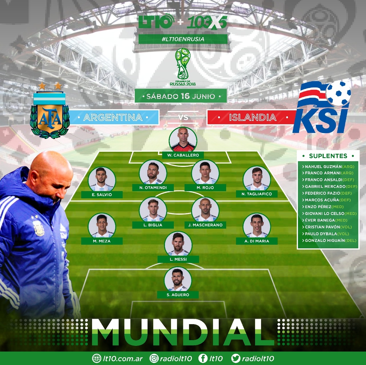 El ingreso de Biglia se debe en buena parte a la inclusión de Salvio entre los titulares. Como Sampaoli estima que Islandia no atacará demasiado por las bandas decidió el ingreso del mediocampista de Benfica de Portugal en lugar de Mercado, que irá al banco.