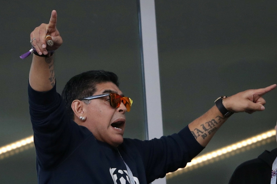 Diego Armando Maradona le pidió este sábado a los hinchas argentinos que "sigamos alentando" al seleccionado nacional tras el empate con Islandia por 1-1 en Moscú, en el debut del Grupo D del Mundial de Rusia.