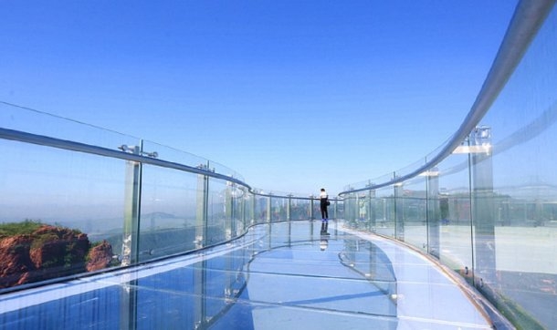 Esta maravilla de la ingeniería se encuentra suspendida a 360 metros sobre el Gran Cañón de Fuxi, provincia de Henan y tiene un largo de 30 metros, con lo que supera en nueve a la que hasta ahora era el puente más largo con esta forma, ubicado en el Gran Cañón del Colorado en Arizona.