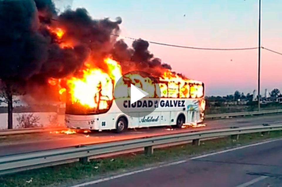 Esta mañana, alrededor de las 7.30, tomó fuego un colectivo de media distancia en Avenida de Circunvalación, a la altura de la Casa Bomba Cero, cerca de Villa Centenario. El vehículo pertenece a la empresa Ciudad de Gálvez e iban 4 personas a bordo cuando comenzó el siniestro.