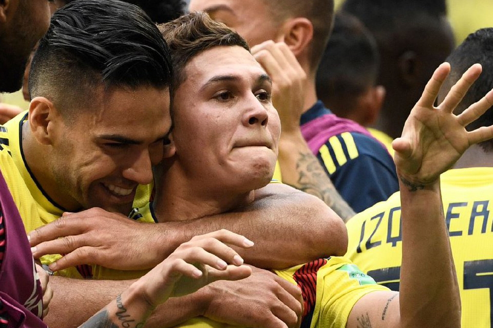 Juanfer Quintero, el volante de River Plate definió de tiro libre por debajo de la barrera para marcar el empate de Colombia ante Japón.