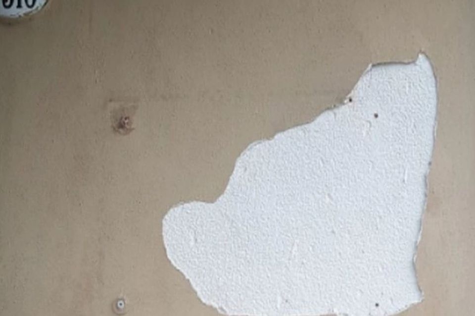La primera solución que encontraron fue hacer desaparecer la E con borrador líquido, aunque quedó la marca y en Twitter siguieron las burlas al respecto.