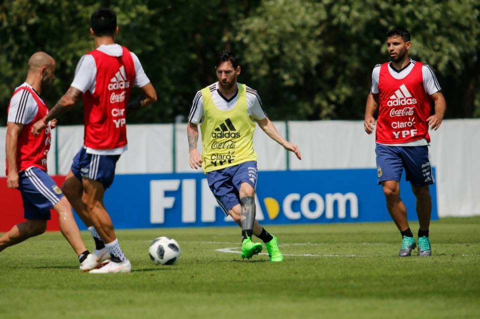 Armani; Mercado, Otamendi, Rojo y Tagliafico; Salvio, Mascherano, Enzo Pérez y Acuña; Messi e Higuaín, sería en principio el equipo que empezó a trabajar hoy en la mente del técnico.