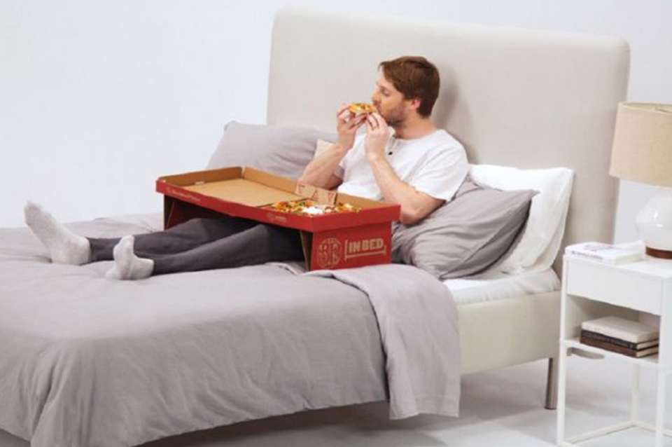 Boston Pizza, atento al comportamiento del consumidor, busca aumentar las ventas dando un plus atractivo a sus hábitos y preferencias, como por ejemplo, comer en la cama. Si bien el lanzamiento estuvo disponible sólo unos días de junio, los consumidores esperan que la caja para comer en la cama, vuelva a salir.