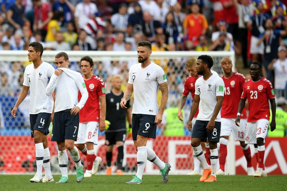 Ousmane Dembélé y Antoine Griezmann, de lo más movedizo en el ataque francés, lo intentaron con unos remates poco trascendentes y así llegaron sin pena ni gloria al entretiempo. Sólo una gran cabalgata del delantero del Atlético Madrid, que corrió unos 70 metros con el balón antes de ser derribado por Mathias Jorgensen, quebró la monotonía de la tarde.
