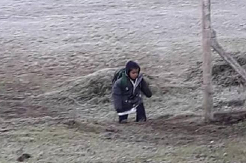 Y subrayó: "Es una postal que refleja mucho más que el niño atravesando la helada. Hay una familia, un grupo de profesores, maestros, directivos, que todos los días también se acercan a la escuela".