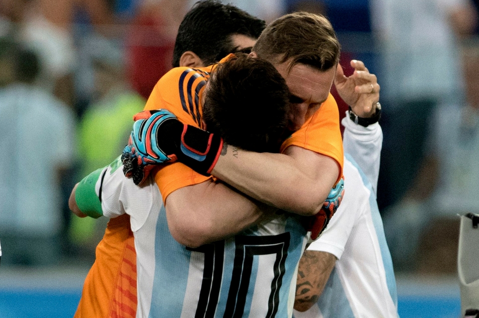 "Al gran pueblo, argentino, salud", tuiteó el arquero de River, apenas finalizado el partido, con una foto donde se lo muestra abrazado con el capitán Lionel Messi. Con una actividad casi nula en el primer tiempo, el nacido en Casilda jugó más con los pies que con las manos en esos primeros 45 minutos, en los que respondió bien y no tuvo grandes ataques del conjunto africano.