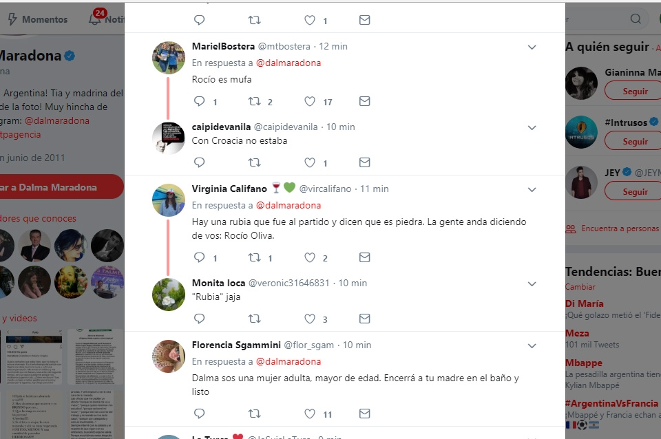 La hija mayor del diez uso la red social del pajarito para hablar sobre la eliminación de la selección Argentina del mundial de Rusia 2018 y deslizar que la mujer de su padre ¿es mufa?