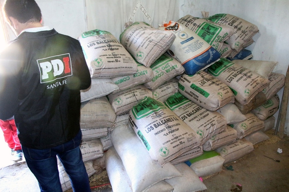 Los oficiales de la Policía de Investigaciones continúan con los operativos en barrio Santa Rosa de Lima y siguen rescatando bolsas de soja del interior de las viviendas. Mientras que ayer la cifra de bolsones recuperados era de 40 toneladas, se estima que hoy esa cifra asciende a 80 o 90 toneladas.