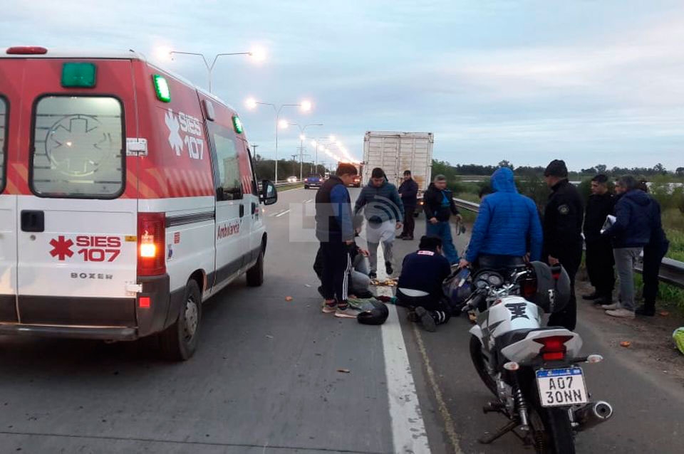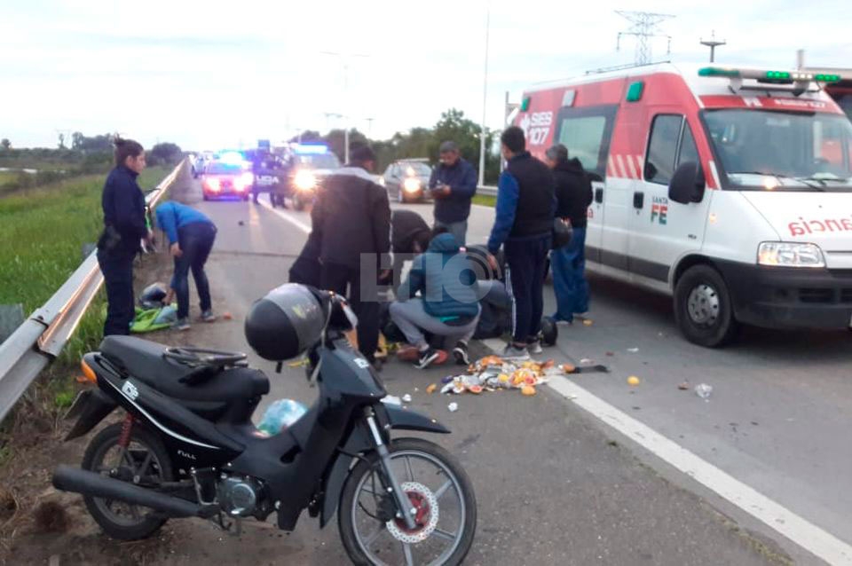 Es reservado el estado de una mujer de 39 años que este viernes circulaba con su moto y fue chocada en la ruta 168 por un vehículo que tras el impacto se dio a la fuga.