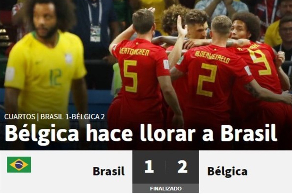 "¡Qué diablos!", puso en su portada el sitio "GloboEsporte", con una foto de Neymar agarrándose la cabeza, y analizó: "Brasil da muchos espacios en el primer tiempo, ve cómo Bélgica se pone 2-0, intenta reaccionar pero queda a un gol del empate y se despide de la Copa".