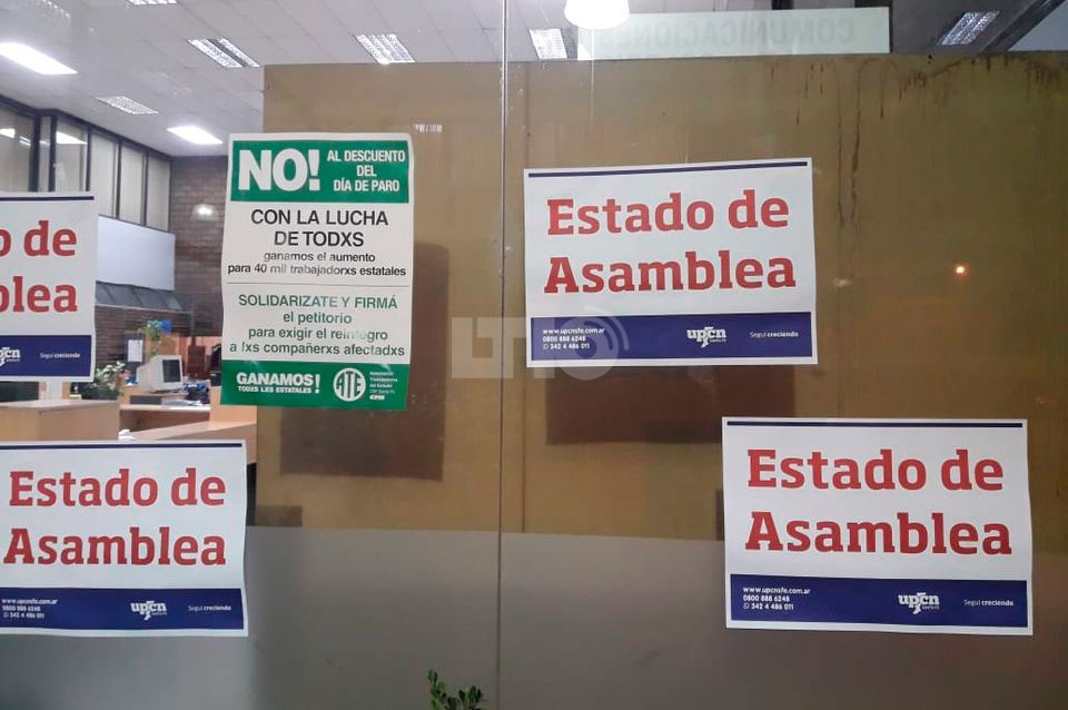 Por su parte, los trabajadores de UPCN que cumplen funciones en la Administración Provincial de Impuestos resolvieron establecer el estado de alerta y asamblea de 7.30 a 9.30 este miércoles, jueves y viernes.