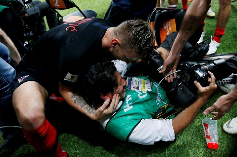Yuri Cortéz, quien retrató a los croatas mientras estaban encima suyo, detalló después del partido: "En el momento estaba tomando la foto, cuando vinieron en frente, cambie la cámara con el lente angular porque sabia que estaban muy cerca y comenzaron a empujarse entre ellos porque venían a celebrar. Entonces sentí como la silla se fue para abajo pero como ya tenia la cámara con el angular siempre estuve tomando las fotos, o sea les tome fotos encima mío".