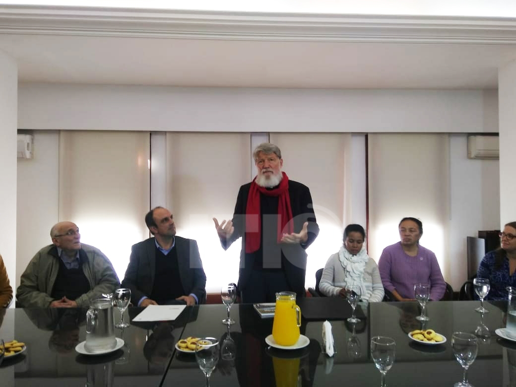 De paso Santa Fe, fue distinguido por el intendente José Corral como Visitante Ilustre de nuestra ciudad. Opeka, recibió el reconocimiento en el despacho del intendente, y posteriormente dialogó con el móvil de LT10 y Litus.