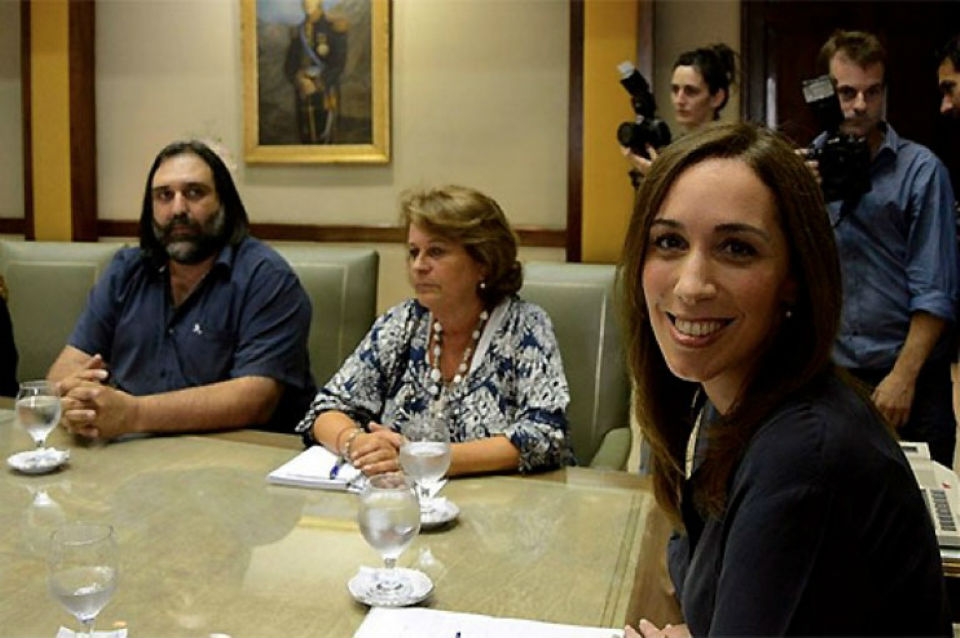 María Eugenia Vidal en la reunión anterior. En el fondo, Roberto Baradel.