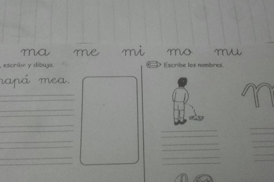 No es fácil enseñar el alfabeto a los más pequeños, sin embargo la curiosa tarea que dio una maestra salteña indignó a los padres. Para enseñarles la letra "M", la docente de utilizó la palabra "mear", que, según la Real Academia Española, viene del latín "meare" y es la forma vulgar de decir "orinar".