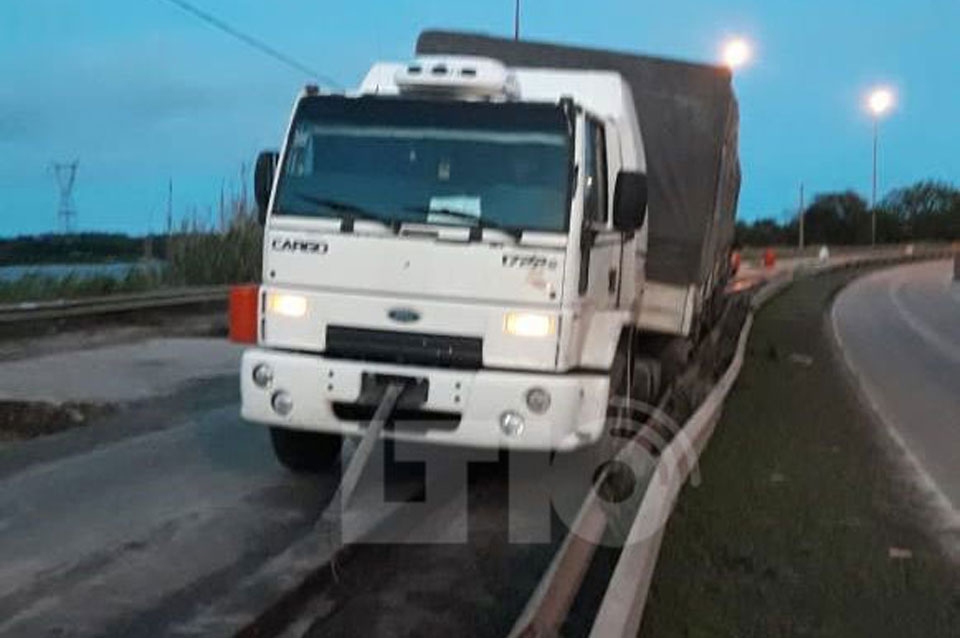 Esta mañana, un camión cargado con alimentos no perecederos quedó empantanado en la banquina e interrumpía el tránsito en el único carril habilitado en la avenida de la Constitución a la altura de la Villa del Centenario.