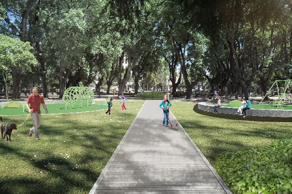 Cabe señalar que el proyecto incorpora nuevo equipamiento y mobiliario urbano, a partir de la colocación de bancos y cestos diferenciales, bicicleteros y vados peatonales, rampas para cruces accesibles en las cuatro esquinas y nuevos paradores para colectivos. Asimismo, prevé el reemplazo de las lámparas de las luminarias existentes por nuevas de tecnología led y la renovación del área de juegos infantiles, diferenciando dos sectores por edades, e incorporando solado antigolpes.