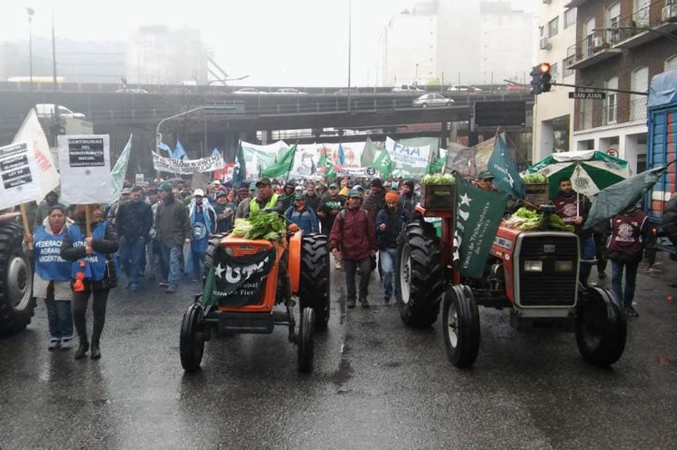 Los productores forman parte de la Federación Agraria Argentina (FAA), la Unión Trabajadores de la Tierra (UTT), el Frente Nacional Campesino y la Agrupación Grito de Alcorta, que pretenden una audiencia con el ministro de Agroindustria, Luis Etchevehere.
