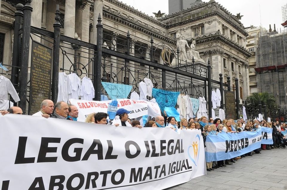 Un grupo de médicos realizó este domingo una protesta frente al Congreso en rechazo al proyecto para la legalización del aborto.