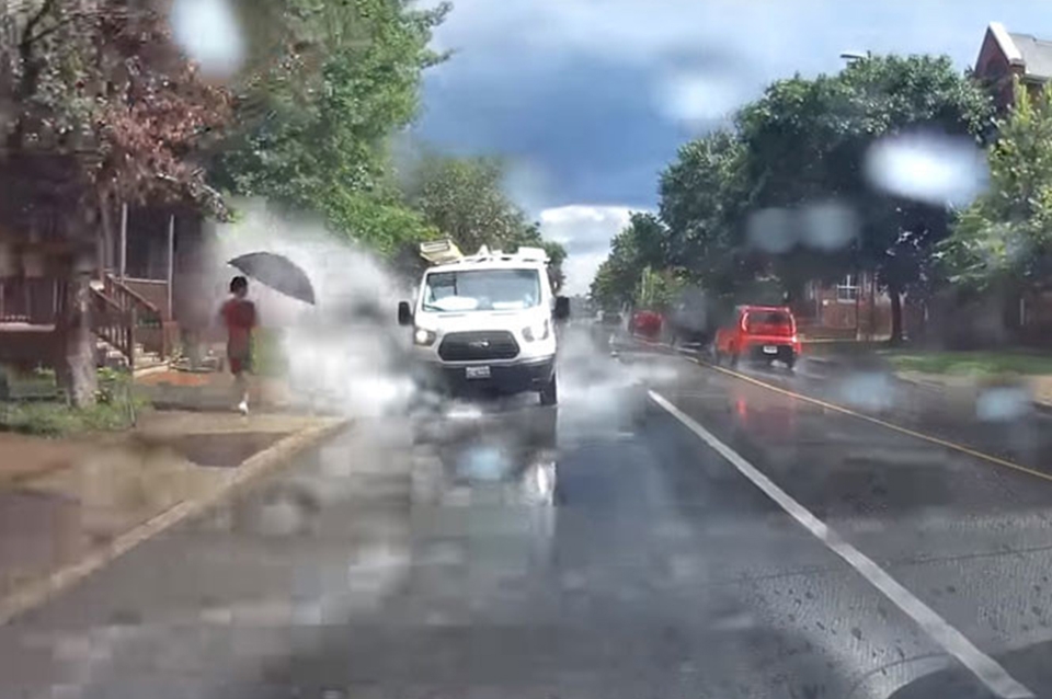 El hombre se acercaba a las veredas con peatones y pasaba por encima de charcos para mojar a la gente. La empresa Black & McDonald pidió disculpas a los afectados e indicó que se trató de “un incidente aislado”.