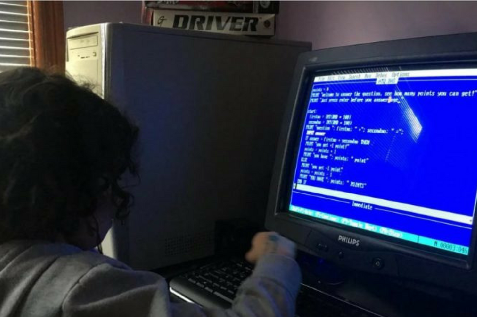 El padre aprovechó una computadora vieja con Windows 98 y el código QBASIC instalado para darle a su hija un libro para que entienda cómo programar.