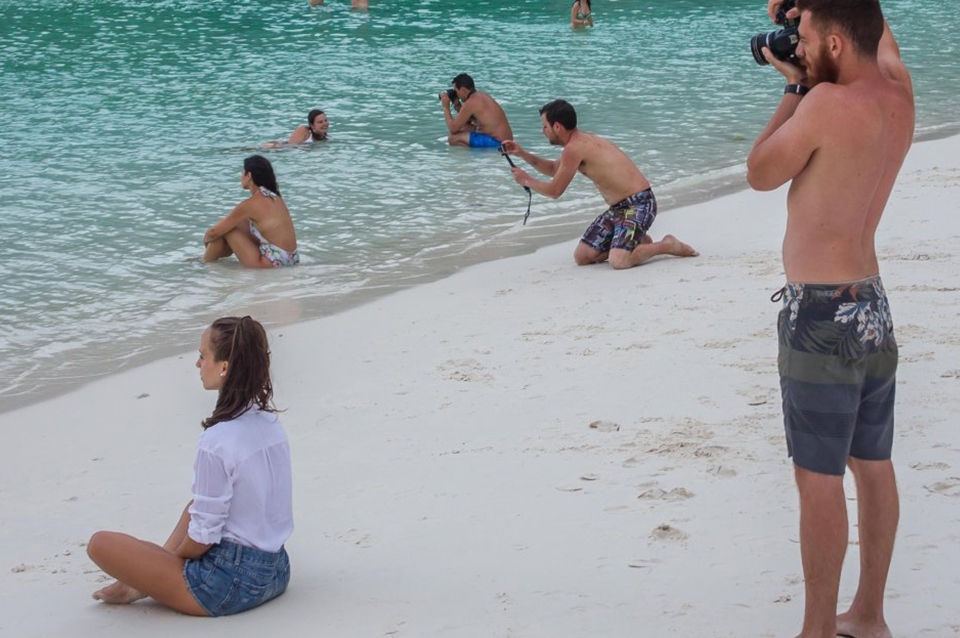 Una nueva foto se viralizó a través de redes sociales. Lo curioso de esta captura, que fue tomada en la playa de Maya Bay, Tailandia, es ver cómo tres chicos están fotografiando a tres chicas en el mismo momento y casi en la misma pose.
