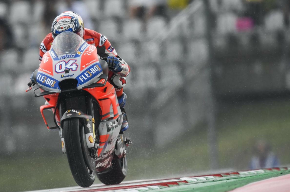 La lluvia que arreció antes y durante la FP2 evitó que se mejoraran los tiempos de la FP1, que se disputó en seco. Así, la mejor vuelta del día fue para Andrea Dovizioso (Ducati Team) con un registro de 1:23.830. El italiano fue 5.º en la sesión de la tarde. El entrenamiento matinal dejó una bonita batalla entre Dovi y su compañero Jorge Lorenzo. Ambos se alternaron en cabeza, mejorando constantemente sus vueltas.