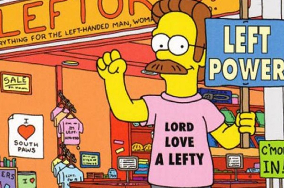 Con mucho tino Ned Flanders, uno de los personajes de la serie Los Simpson (creada por otro zurdo, Matt Groening), propuso abrir en Springfield una tienda de artículos para zurdos que, si no hubiera sido por Homero, podría haber sido todo un éxito.