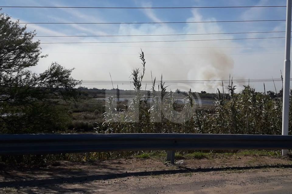 Los bomberos trabajan en el lugar pero no pueden acceder al área donde se encuentra el foco debido a los bañados que hay antes de los pastizales.