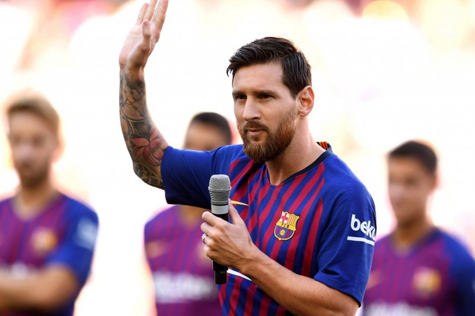 El crack rosarino estrenó su condición de capitán dirigiéndose a la grada tras la presentación de la plantilla azulgrana antes de la disputa del Trofeo Joan Gamper ante Boca.