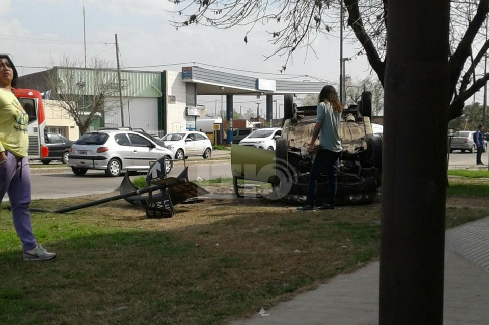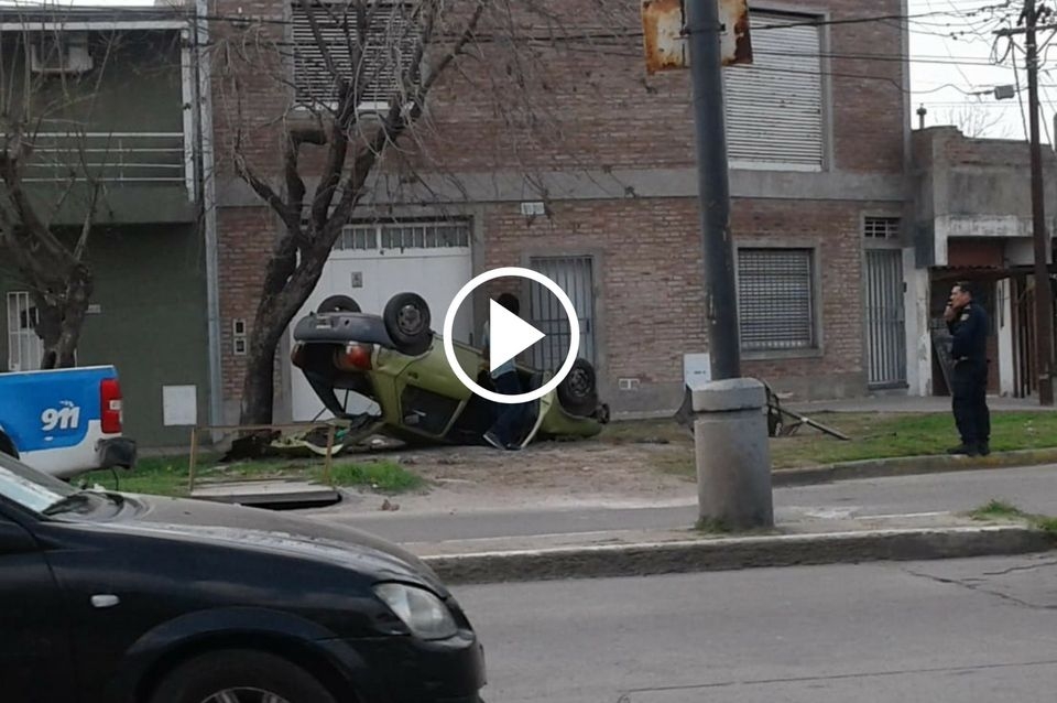Minutos después del mediodía de este sábado se registró un espectacular accidente en Perón y Luciano Molinas.