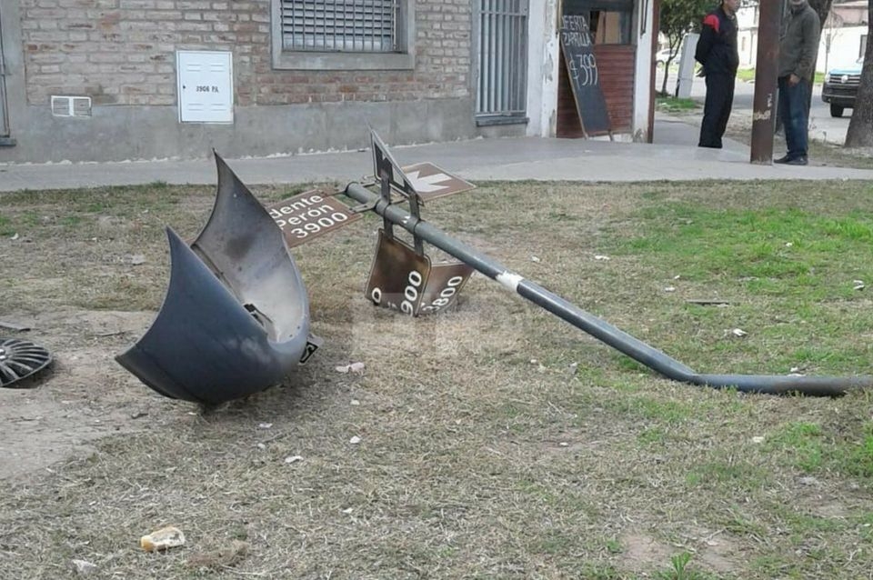 El impacto fue tal que el auto volteó el cartel que indica el nombre de las calles.
