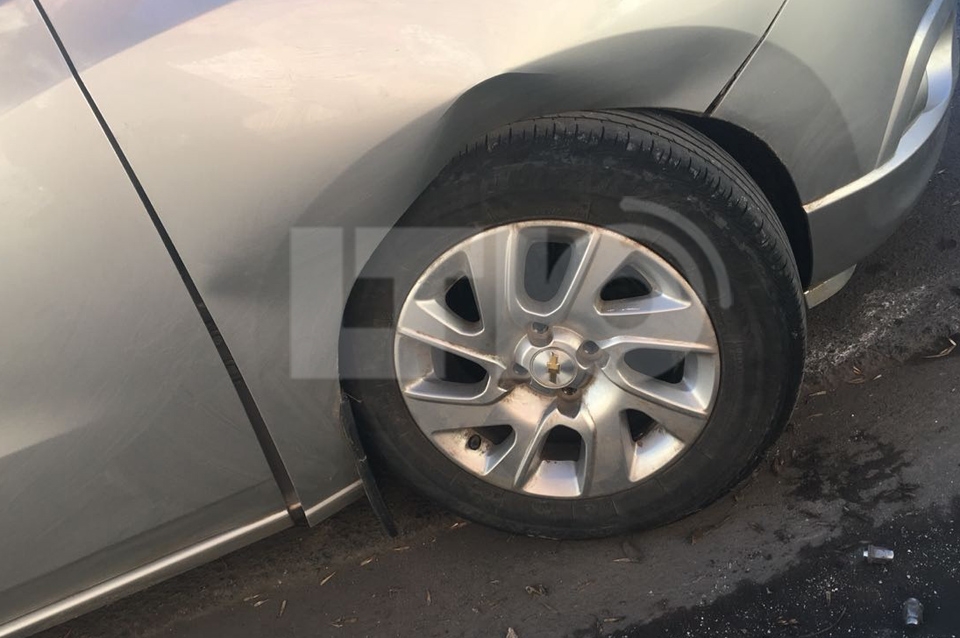 En la madrugada deliencuentes accionaron contra su vehículo y tras aflojarle dos de las cuatro ruedas del vehículo llegaron a robarle una mientras que la otra quedó sin las tuercas y prisionadas por el auto.