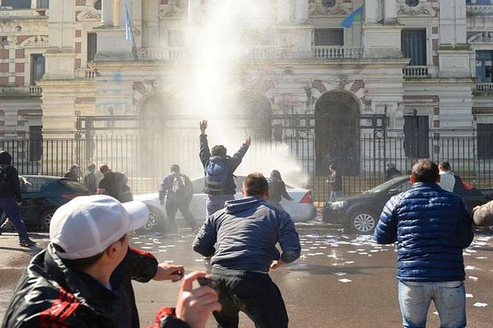 Con balas de goma y gases lacrimógenos, la Policías bonaerense evitó que los empleados del Astillero Río Santiago llegaran a la puerta de la gobernación platense en reclamo de los puestos de trabajo.