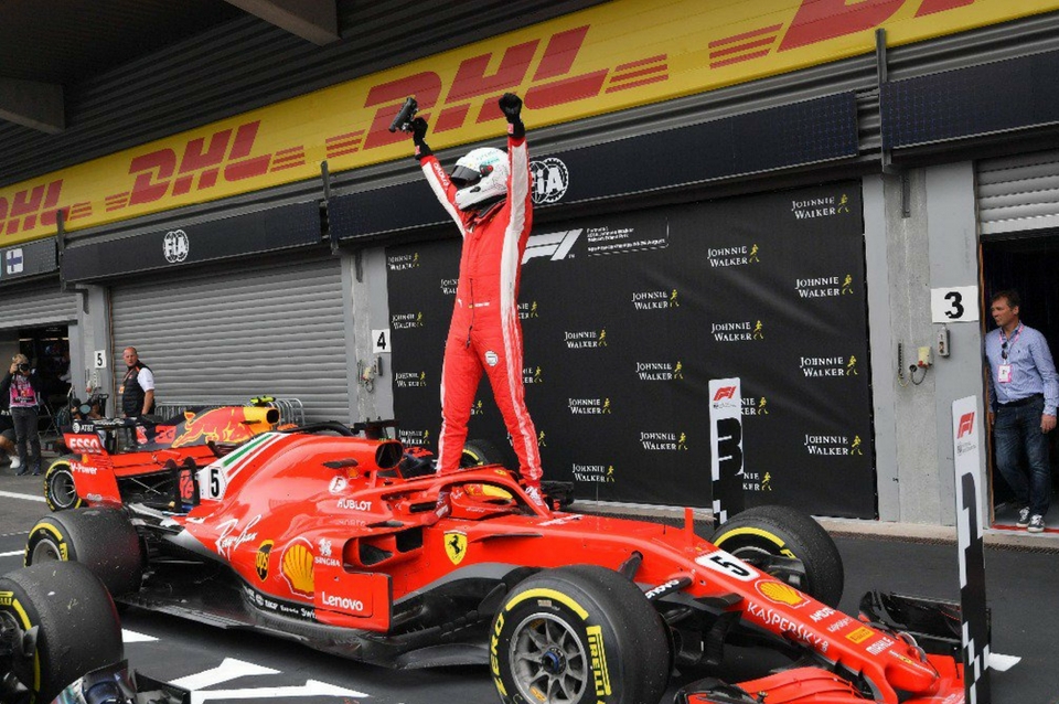 Además, Vettel consiguió su victoria número 52 en la competición más importante del mundo del motor, superando las 51 del francés Alain Prost. En la lista ya solo tiene por delante las 67 Hamilton y las 91 de alemán Michael Schumacher. Vettel partía desde la segunda posición en Spa, después de que Hamilton se aliara el sábado con la lluvia para arrebatarle la "pole" en el último momento. Sin embargo, al de Mercedes le duró el primer puesto unos pocos metros.
