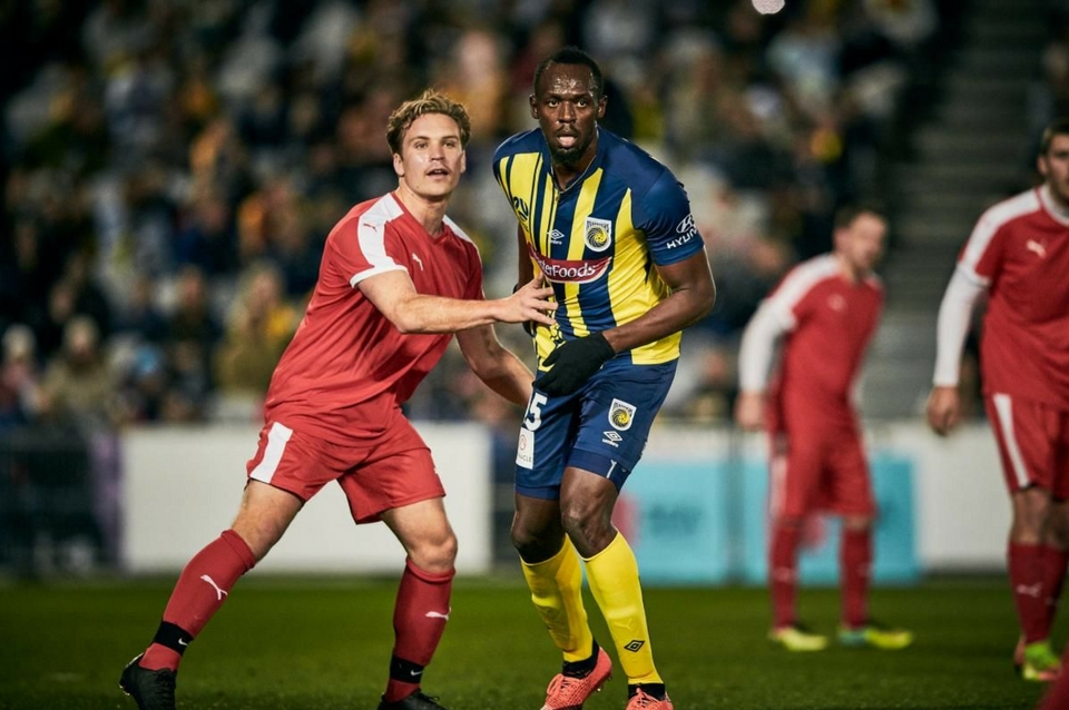 A moment in sporting history is made. @usainbolt, the footballer, steps onto the pitch in Yellow & Navy. ⚡️ #CCMFC #ALeague pic.twitter.com/3j9ZuEvTsf