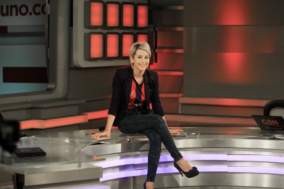 Mariela Fernández, conductora del noticiero, ingresó al estudio en bicicleta e intentó levantarla en el aire: “De a poquito hago magia pero me olvidé de ponerme las zapatillas. Es difícil así”, dijo mientras preparaba el “salto”