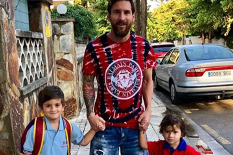 Leo Messi llevó a la escuela a la escuela a Thiago y Mateo. Antonela Roccuzzo no quiso perderse este momento y fue la encargada de fotografiar la escena.