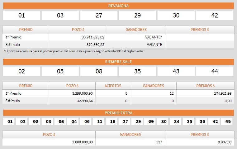Para el mismo, las modalidades quedan desglosadas de la siguiente manera:$19.000.000 para el “Tradicional Primer Sorteo”, el “Tradicional La Segunda” se viene con el pozo más alto con $ 66.000.000 y la “Revancha” ofrecerá unos $38.000.000.