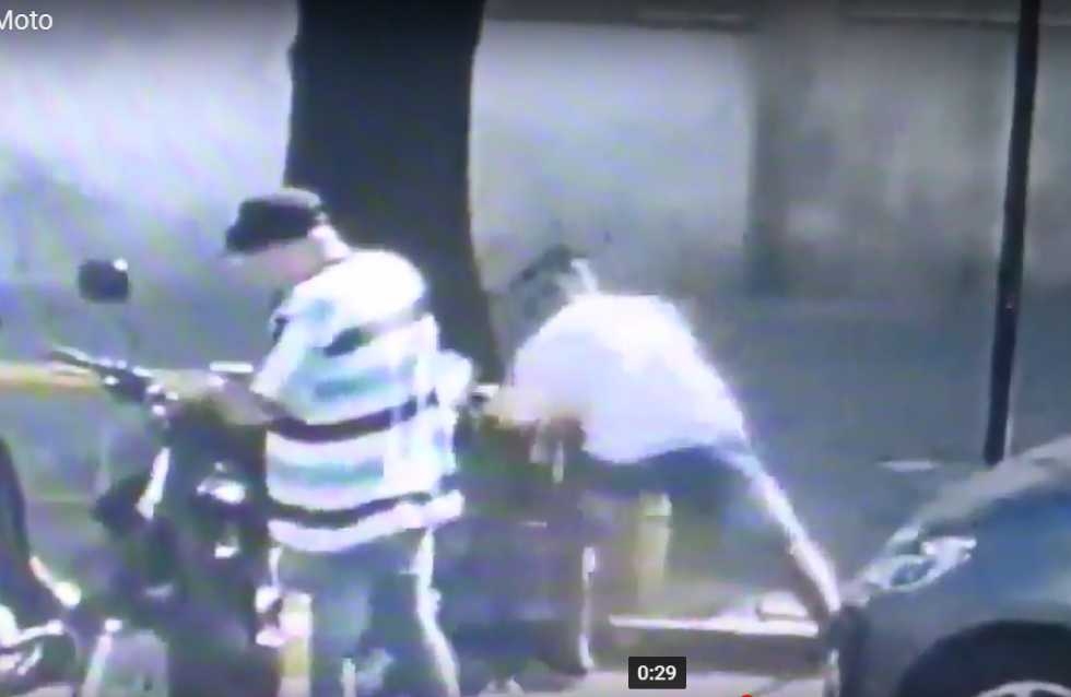 Todo quedó filmado por un vecino que, tras ver un accionar sospechoso, filmó la secuencia con un celular y llamó a la Policía busca dar con los deliencuentes.