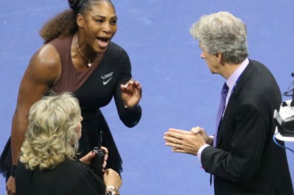 Cuando Williams perdía 3-2 en el segundo set, no pudo contener la rabia y golpeó fuertemente su raqueta contra el piso, con lo cual quedó destrozada.