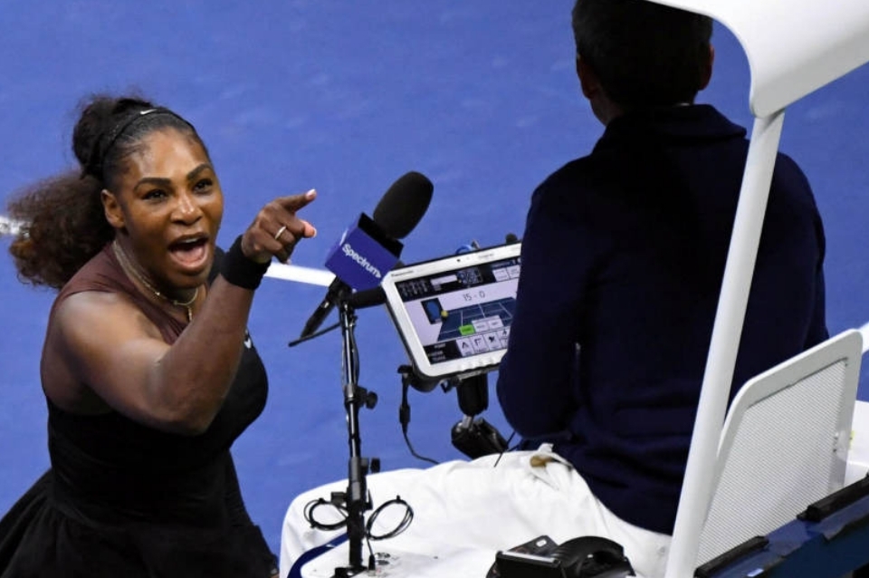 Según el árbitro, hubo tres infracciones del código por parte de Williams: primero una advertencia por supuestamente recibir indicaciones de su entrenador, luego una penalización por romper su raqueta y, finalmente, una penalización por abuso verbal.
